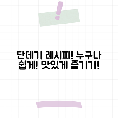 여러분, 집에서 간편하게 즐길 수 있는 요리를 찾고 계신가요? 제가 소개할 단데기 요리법은 정말 쉽고 재밌답니다. 이 요리는 소소한 재료만으로 만드는 재미가 있고, 특히나 친구들과 함께 만들어 먹으면 더 좋지요!